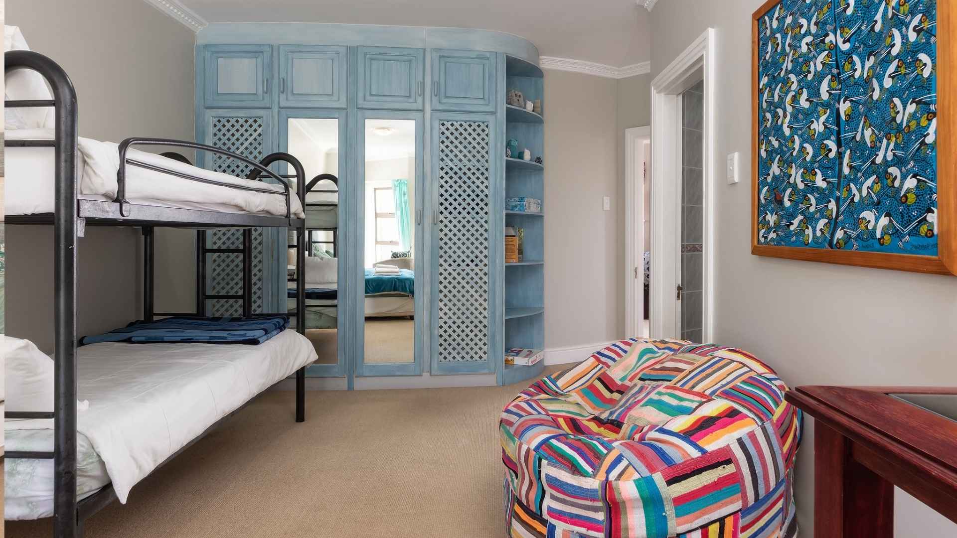 Large room (upto 3 guests) is positioned on the first floor of the guesthouse, where guests can enjoy a stunning view over the rolling hills and ocean of Mossel Bay. A perfect room for adventurous travelers seeking plenty of space and easy accessibility for moving in and out of the guesthouse.